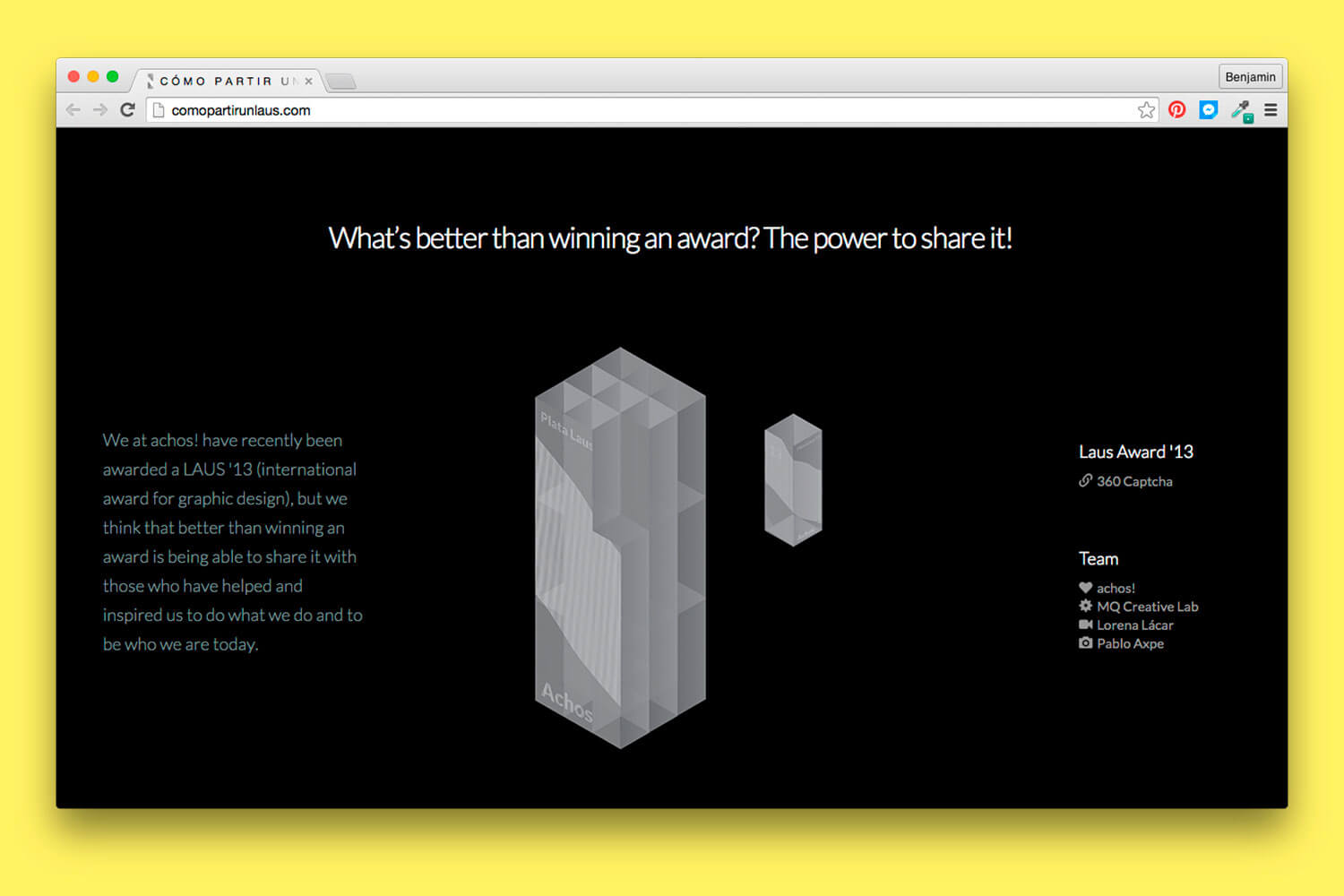 We were ecstatic to win a 2013 student Laus National Design Award, and we wanted to thank everyone who helped us achieve it. Thinking about the nature of awards and how students learn from so many other people, we decided to spread the love by designing a way to share the prize with everyone.